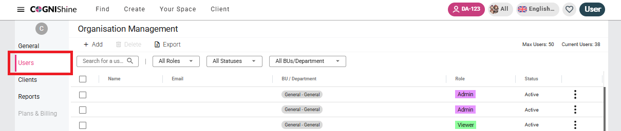 (More details about the Organization Management settings can be found here: https://help.cognishine.com/article/175-organization-management.)