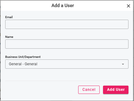 Select "+ Add". You will then be prompted to add the email address, name, and department of the user.